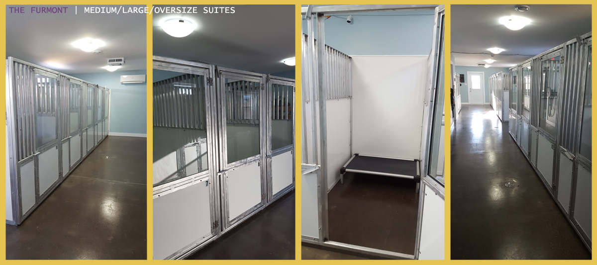 We currently have 19 suites available for overnight boarding or day visits. Small suites | approx. 3' x 4' Medium suites | 3' x 6' Large suites | 4' x 6' Oversize suite | 6' x 6' Our facility is designed with comfort and cleanliness in mind. Our spacious suites - each furnished with a raised orthopedic Kuranda bed - provide a comfortable and safe space for our guests to rest. Regulated temperature, adequate air flow and comforting music ensure that your dog will feel right at home. Each guest will enjoy multiple potty breaks and play time throughout the day in our indoor and outdoor play areas. Social dogs will have an opportunity to play with other dogs in a supervised setting, while dogs that prefer not to socialize with other guests will be provided with one on one playtime with staff. |